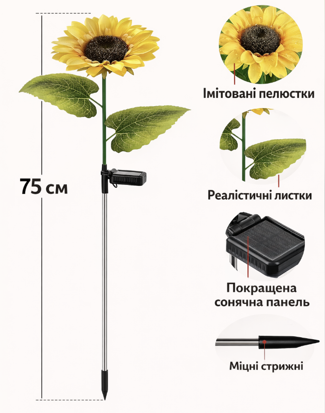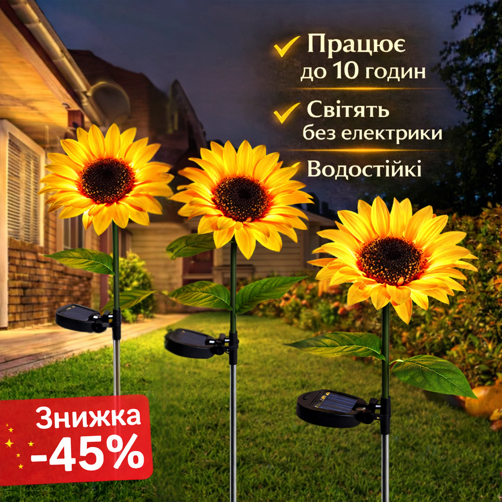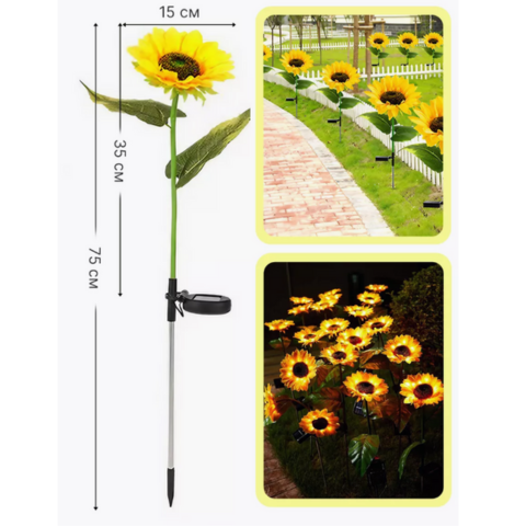 Новий газонний світильник "Соняшник" на сонячній батареї, ідеальне рішення для ландшафтного підсвічування доріжок, квіткових клумб, саду і т.д.